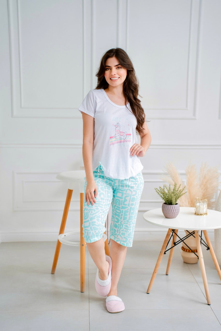 Capri en Algodón Manga Llamas VerdeMenta