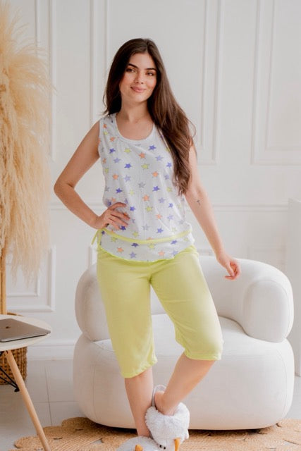 Capri en Algodón Sisa Estrellas Verde